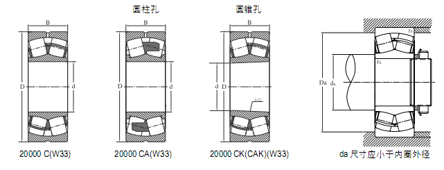 b、具有自動調(diào)心的功能,即內(nèi)圈軸線相對外圈軸線有較大傾斜時(一般在3度以內(nèi))仍能正常運轉(zhuǎn)